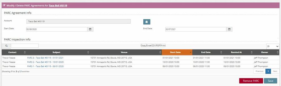- PARC: indicates if there is any PARC Agreement with that account, and what is the status (enabled or expired).