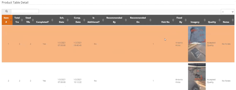 This option tells you how many burns the job was, and you can see the pictures that came through when the technicians finished the repairs. This is one way to see which technician did which repair, especially in those cases when the job is complex, and there might be two or three crews working at the same time, at the same property.