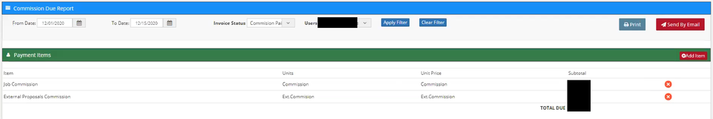 To generate this report, the user needs to access the "Commission Due Report". Then again, apply filters to see one by one the Account Managers and create a report for each of them (make sure to search using the status filter "Commission Paid").